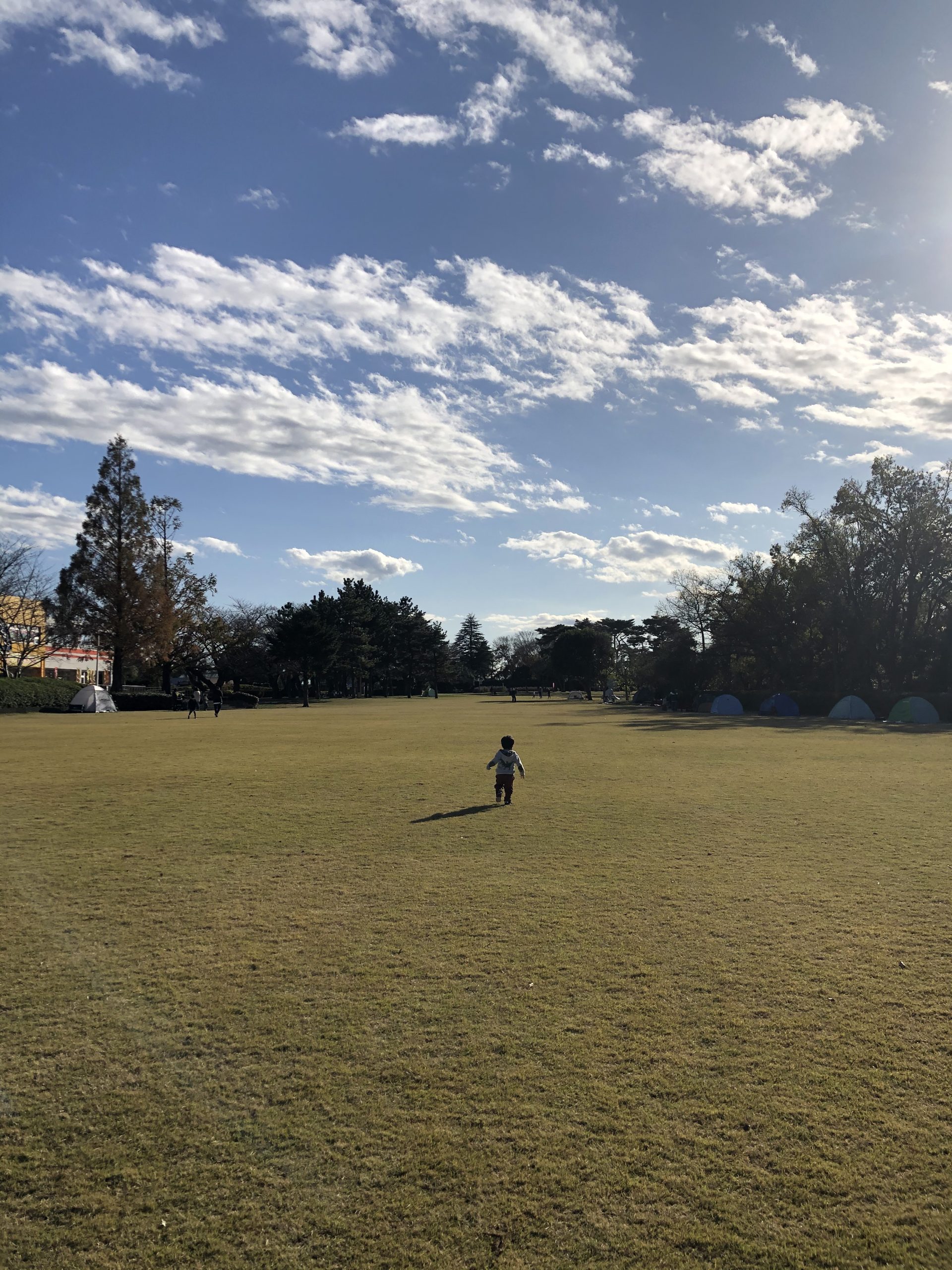 とりあえずお昼ご飯!と思ったのですが、息子が向かったのは芝生広場・・!
